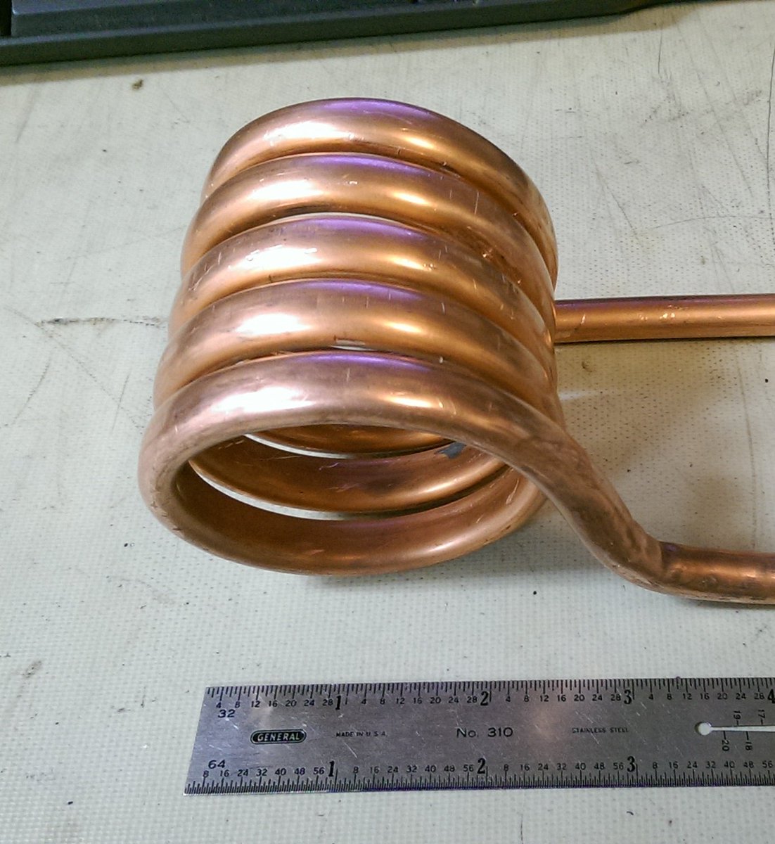 The induction coil will be water cooled. Made this the night before last. I think it's 5/16" dia copper pipe. 5T, 2" I.D.